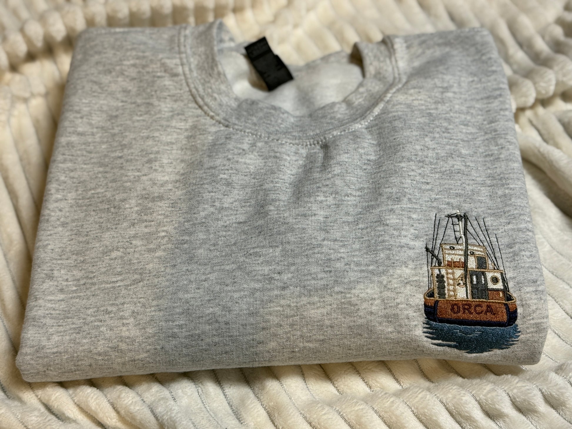 Pay homage to the iconic shark-hunting vessel with our Embroidered ORCA T-Shirt. This high-quality tee features a clean, minimalist left chest embroidery of the word ORCA, inspired by the legendary boat from Jaws. Whether you're a fan of the film or just love nautical nostalgia, this shirt makes a bold but subtle statement.